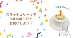 息子の1歳の誕生日には、一升米と選び取りカードの他にスマッシュケーキでお祝いしました。