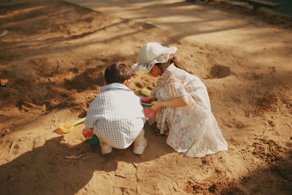 公園に遊びに行った時に、息子より小さい女の子が座り込んで遊んでいた時のことです。