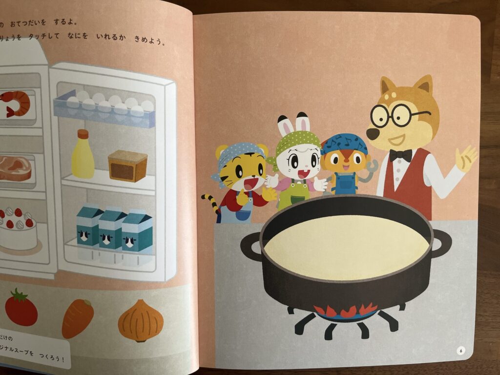 コックさんのお手伝いでは、冷蔵庫の中にある食材から好きな材料を選んで鍋に入れてペンで混ぜると、オリジナルスープを作ることができちゃいます!