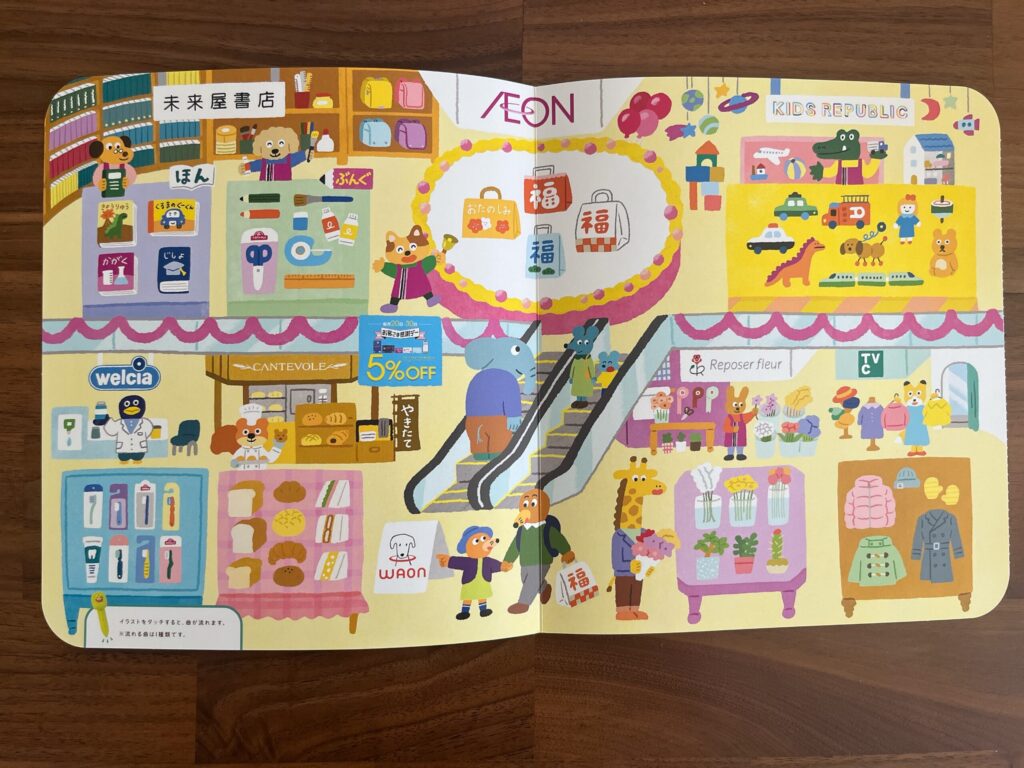 イオンの売り場に見立てたシートに、しなものカードを並べることでお買い物ができます。