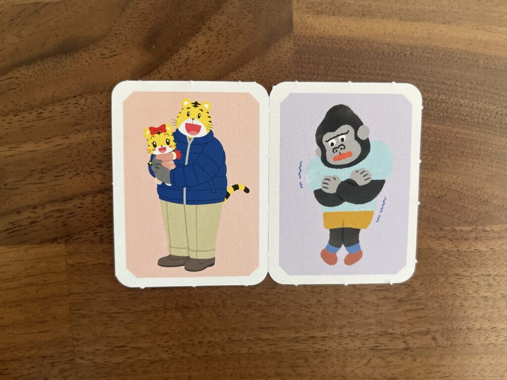「さるはどこかな?」「しまじろうの”し”はどれかな?」と質問することで、絵と言葉をリンクさせて認識を深めていくことができます。