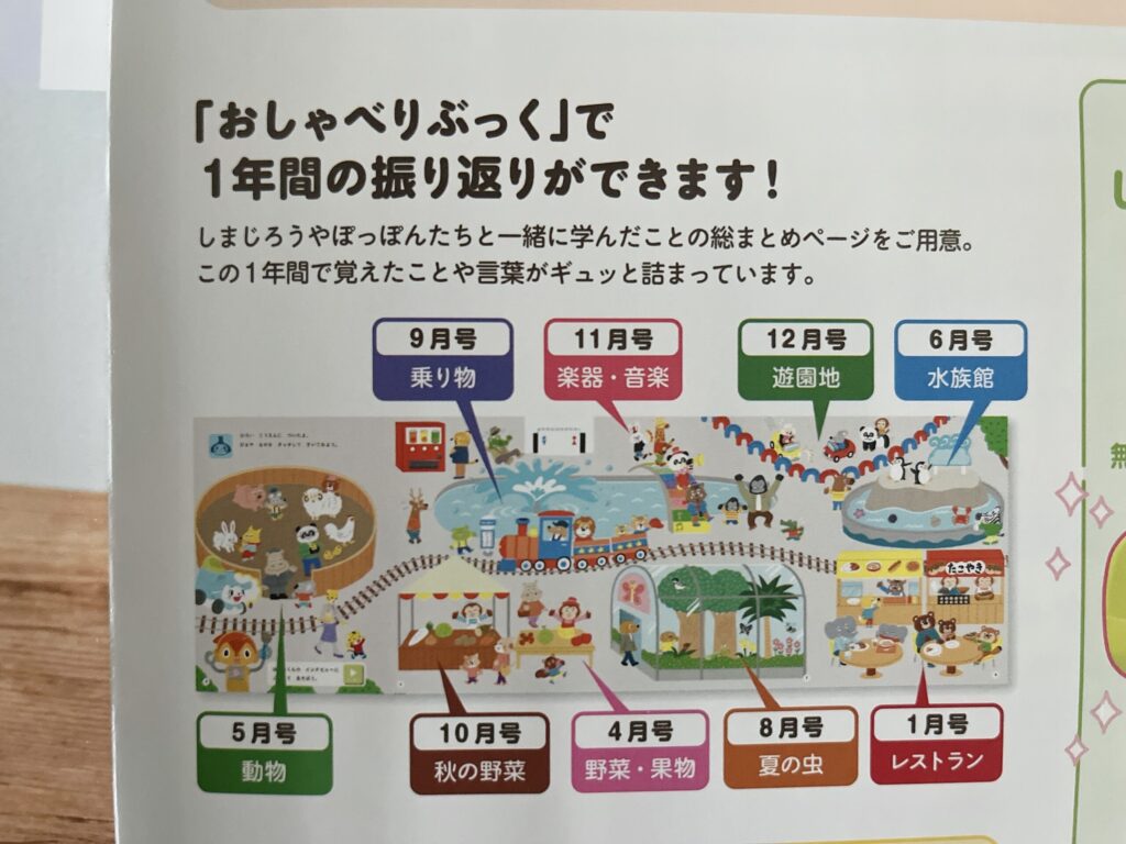 途中入会で受講していない号もありましたが、おしゃべりぶっくに載っていた遊園地を見て「前に遊園地で遊んだね!」という流れから、過去号を引っ張り出す良い機会になりました。