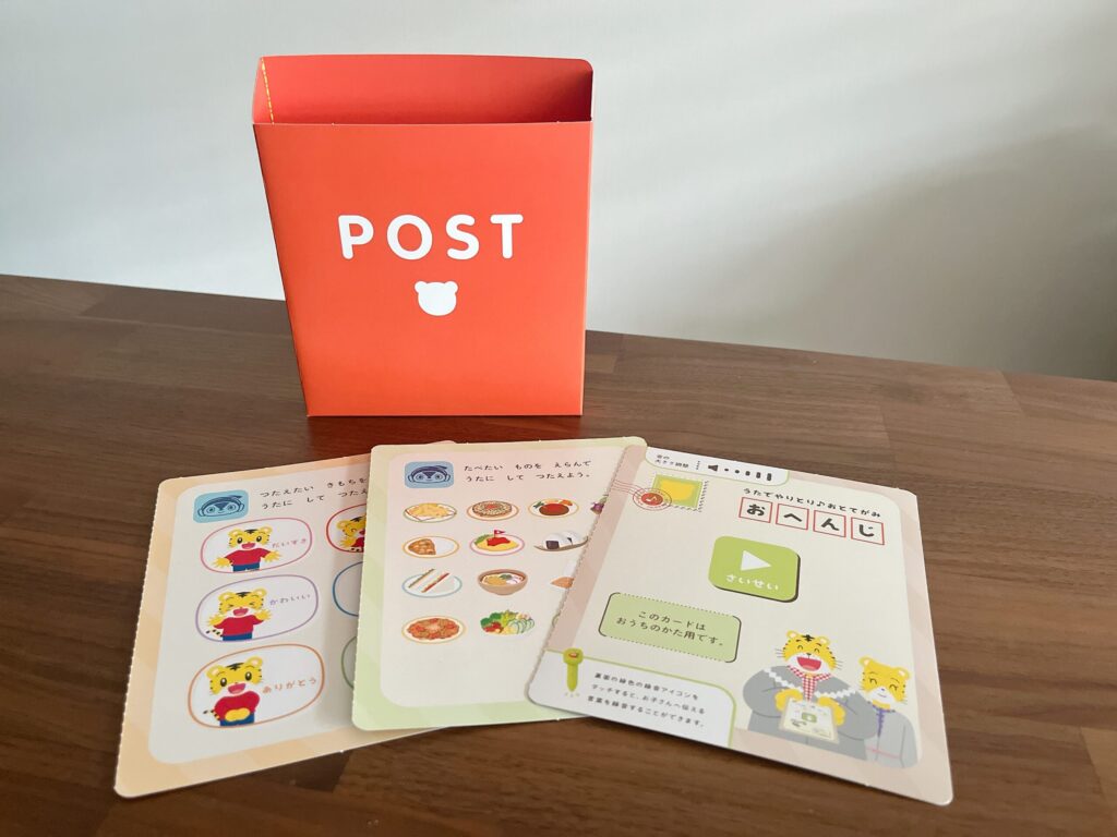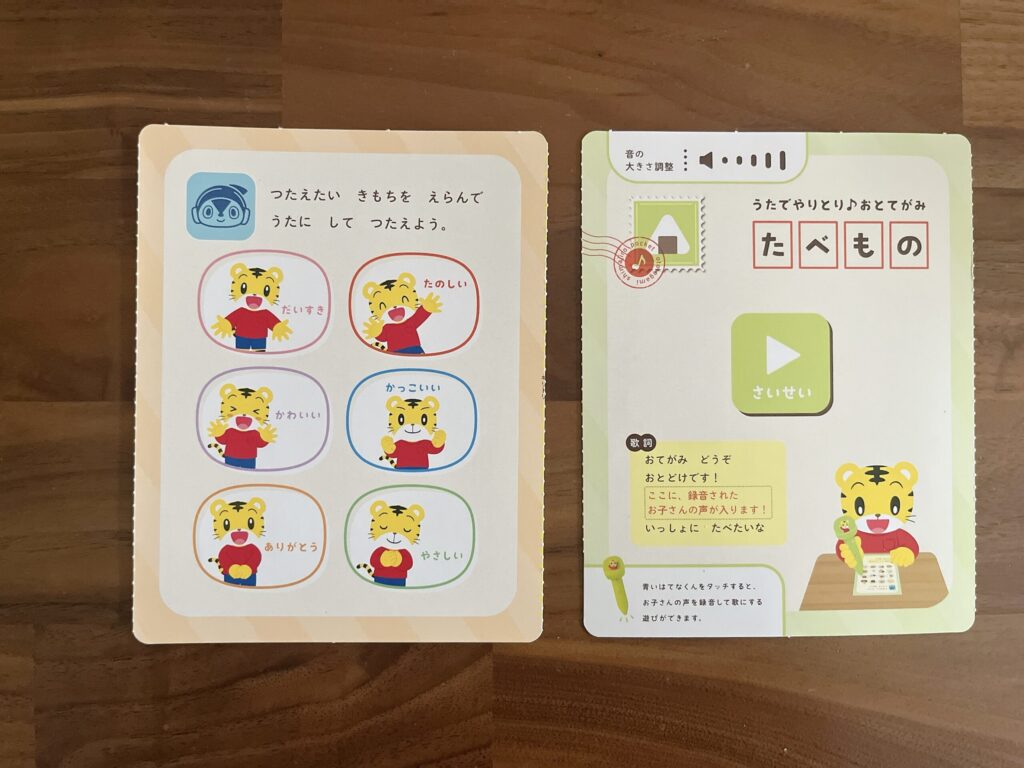 おしゃべりしまじろうペンを使って、おうちのかた(パパ・ママ)と子どもとで、手紙を通して気持ちを伝え合うというごっこ遊びができます。