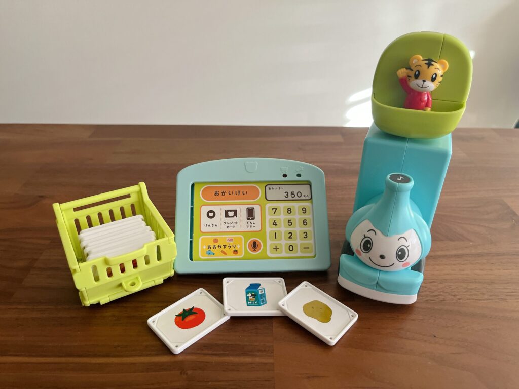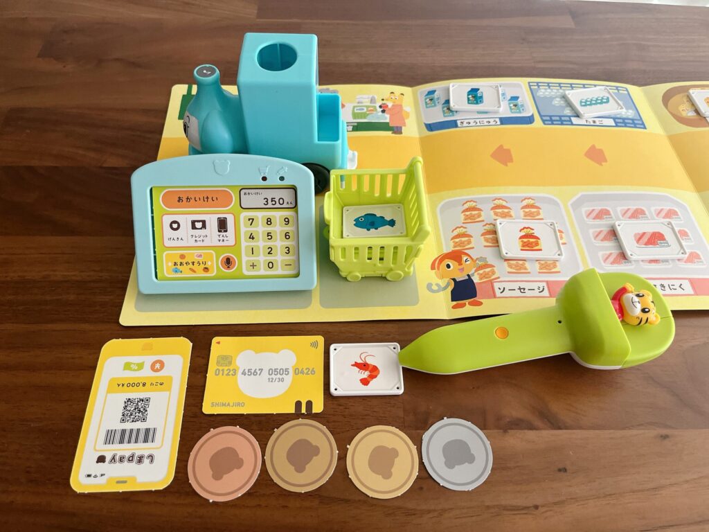 息子は品物カードをタッチペンでピッ!とすることにハマったようで、「ぴっ!」と言いながら1時間近くエンドレスで会計をしていました。笑